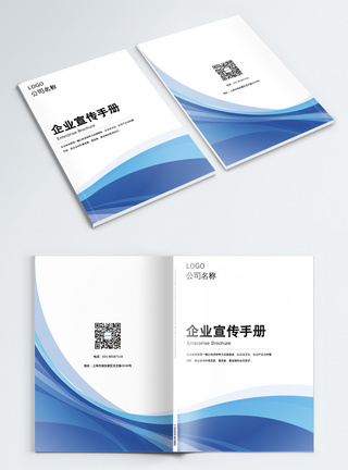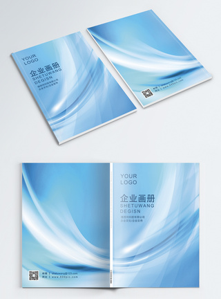 企业蓝色波纹画册封面模板