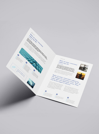品牌介绍简约淡蓝色折页样机模板